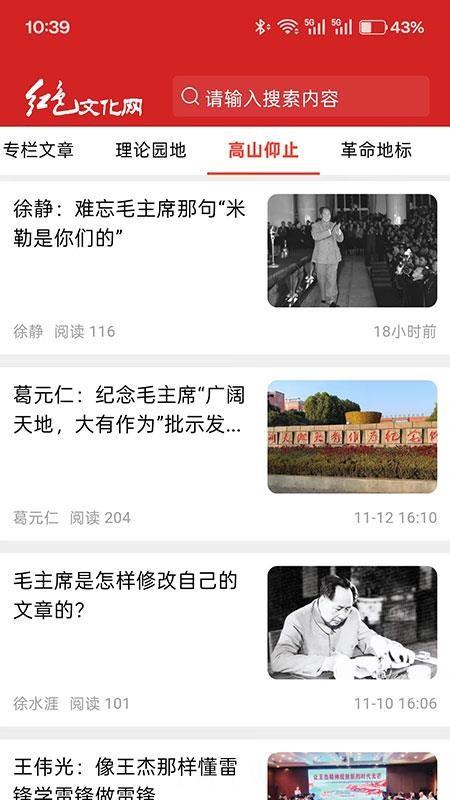 1、具备搜索文章功能,点击搜索框输入关键词,开展红色文化相关文章的查找与检索操作。