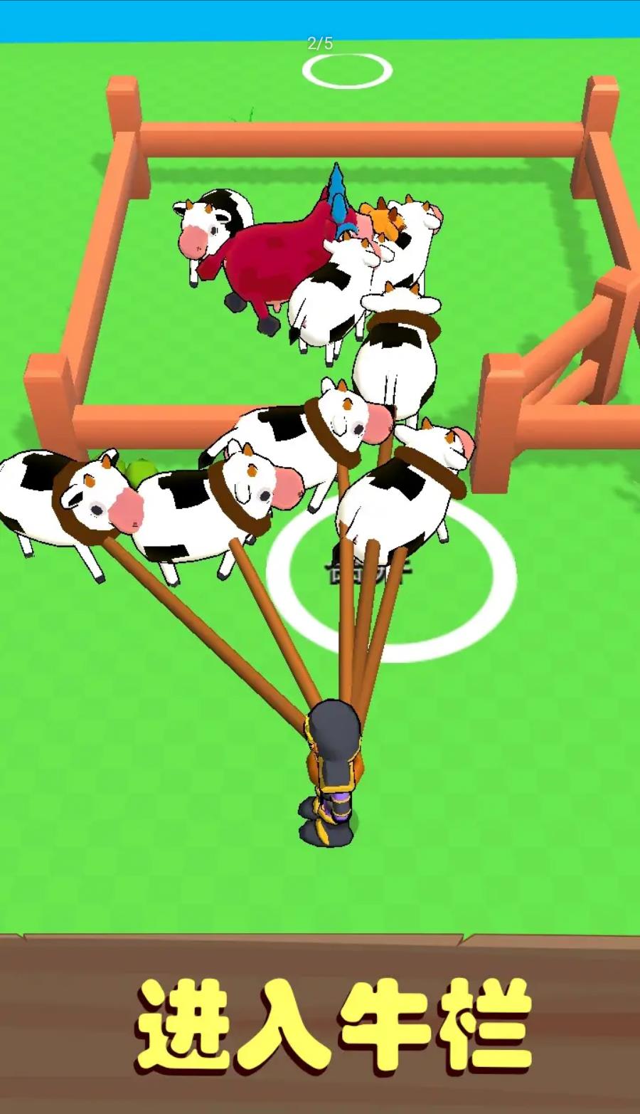 2、拖拽已捕获的奶牛,朝着场景中的桥梁方向移动,避开其他奶牛,推进运输流程。