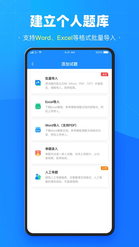 若现有题库无法满足您的特定需求,您可通过指定平台上传个性化题库并开展在线练习,对于批量题库导入,可寻求客服支持以完成高效导入操作。