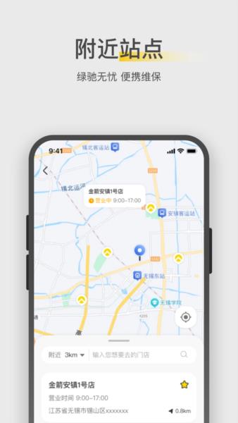 2、提供定制化导航服务根据实时路况规划最佳骑行路线,并智能指引附近充电站位置优化出行效率。