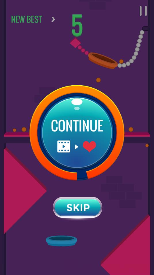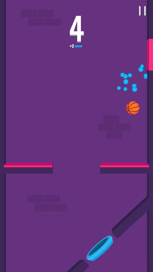 2、游戏是通过点击来让篮球在空中保持跳跃,篮球会一左一右的跳跃,需让篮球进入篮框来得分。