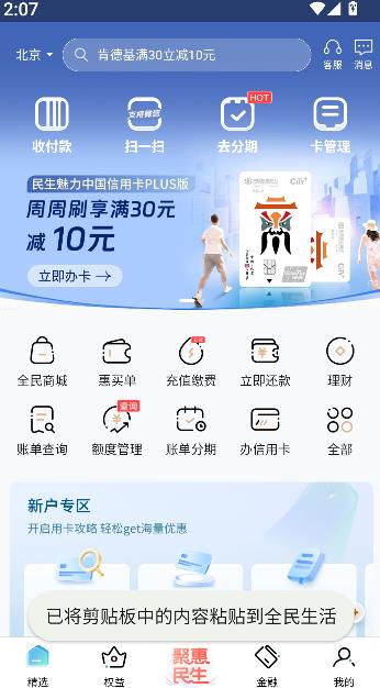 《全民生活》是一款专注于日常消费与生活服务的应用工具,围绕支付、消费管理及各类便民服务展开功能设计。用户可在软件中便捷查询账单、浏览优惠活动及查看相关权益信息,轻松掌握个人消费情况。应用内设有餐饮、出行、购物等分类入口,查找所需服务更加高效清晰。整体操作流程简洁明了,强调实用与易用性,能够满足日常支付管理、优惠获取及服务办理等多种生活需求,为用户带来更便捷的生活体验。