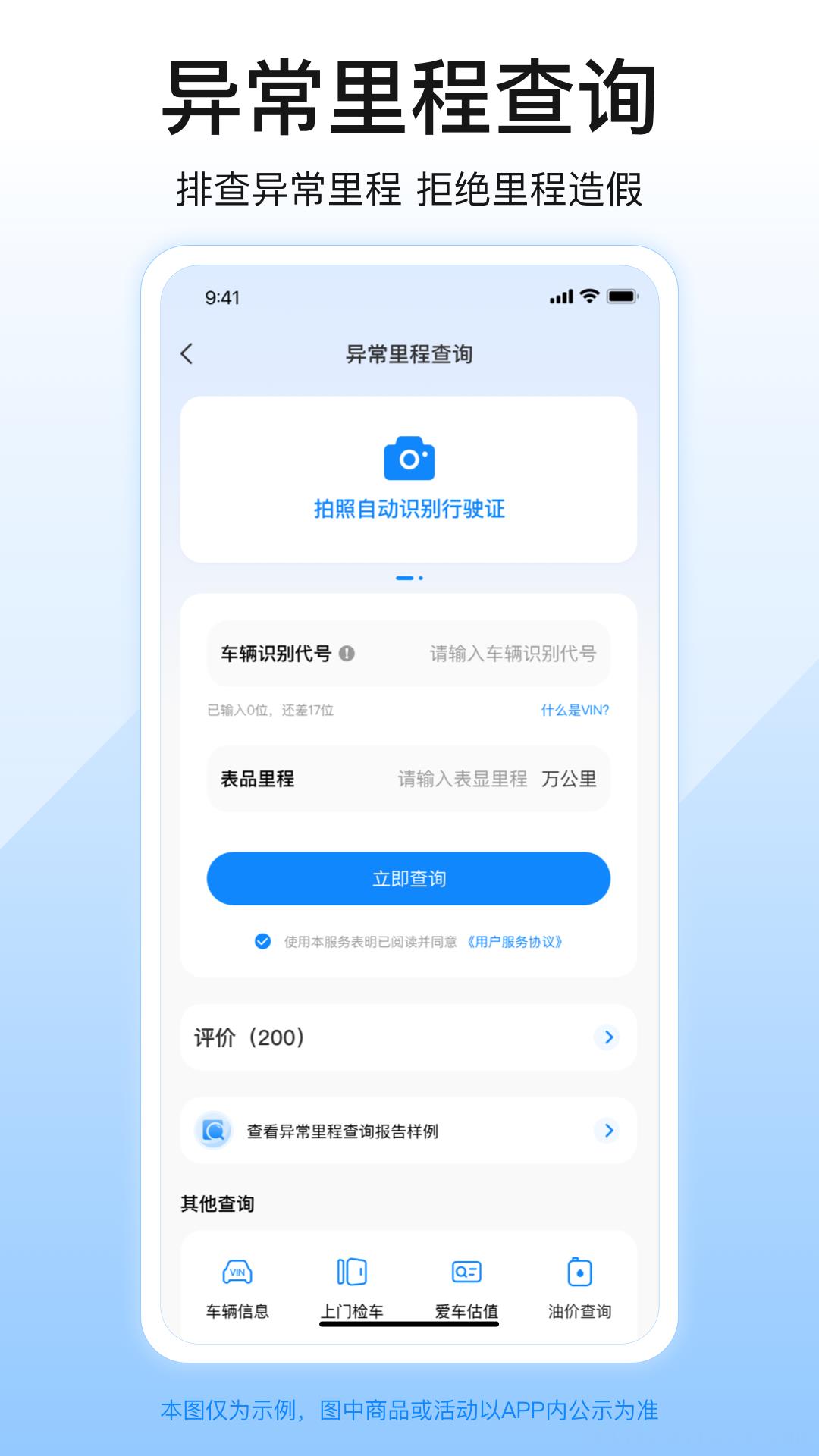 2、具备车况查询功能,含事故车历史车况等,还可评估新能源车辆的电池损耗程度。
