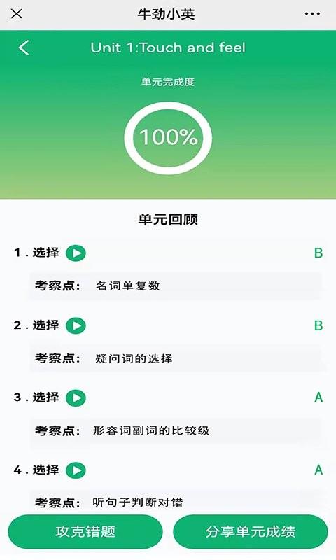 4、添加课本后会回到主页,能看到该课本的单元内容(比如【Unit1Touch-and-feel】),可直接选择单元开始学习哦。