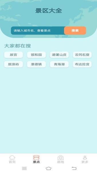 1、设景区大全板块,可通过输入城市名查询景点或选择热门景点,快速获取对应景点的访问入口。