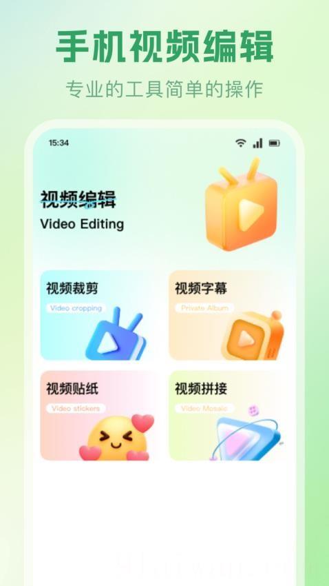 3、支持对视频进行精准裁剪、无缝拼接等操作,还能添加字幕和贴纸,操作简单且创作效果佳。