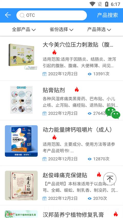 3、进入【眼科用药】列表页,找到目标产品,点击条目可进入该产品的详情页面。