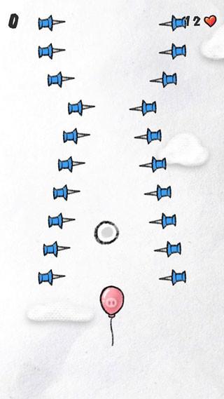 3、关卡中关注上方下落的物体,持续移动圆圈道具进行格挡,保护下方的气球角色不被击中。