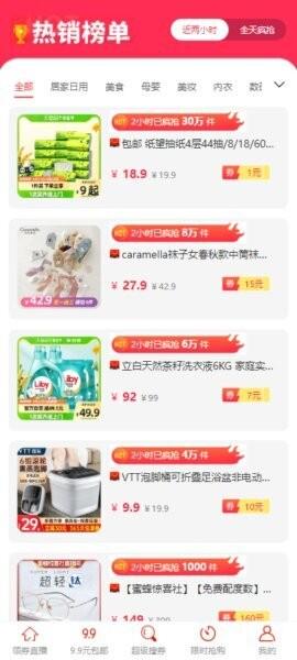 2、覆盖居家日用、美妆、母婴等全品类商品,支持按榜单或搜索找货,满足不同用户的购物需求,选品范围广泛。