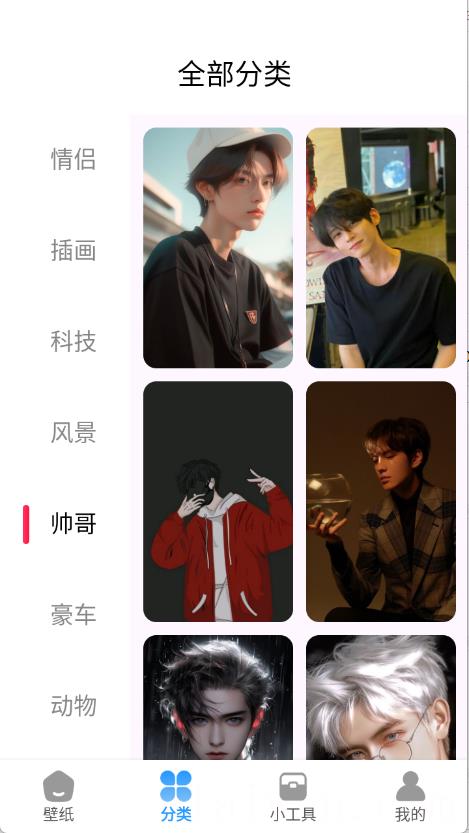1、壁纸浏览与搜索功能,可按风格、主题等分类查找图片素材,或通过关键词搜索所需内容。