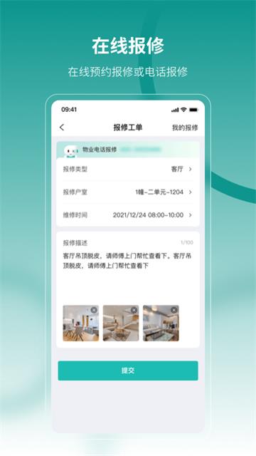 提供游客预约、一键开门等快捷功能,以及社区公告、问题反馈、物业论坛等社区信息服务
