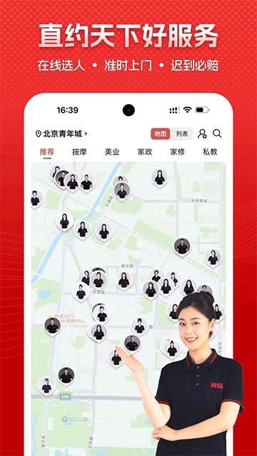 2、用户可使用“直约”功能,按距离筛选服务人员,自主选择预约对象。