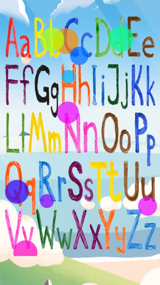2、页面里可点击画面会发出啊的发音,滑动页面,可以切换其他字母。