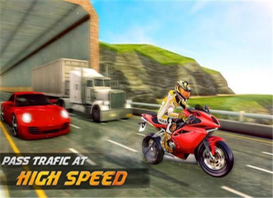2、挑战艰难的自行车比赛和疯狂的驾驶模拟器。《高速公路摩托车赛》是一款惊险刺激的赛车游戏。